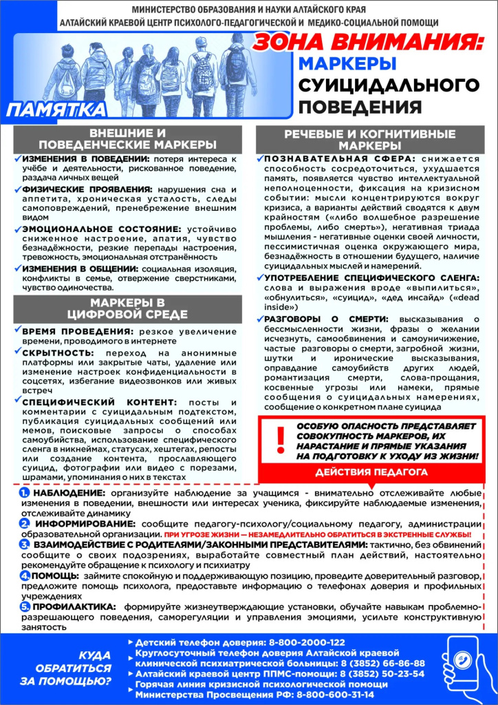 - Письмо Минпросвещения РФ от 10.04.2025 № 07-1613 «О методических рекомендациях «Алгоритмы действий педагога-психолога в случае выявления суицидального риска и совершения суицидальных действий обучающимся»