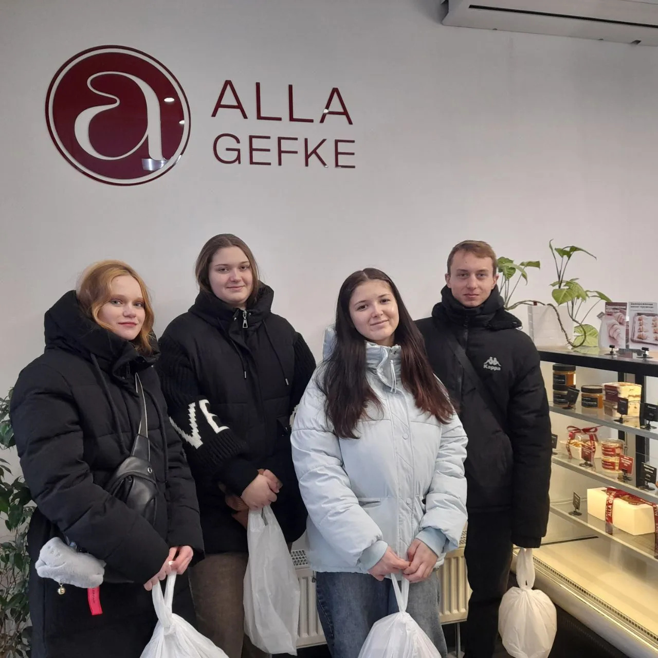 Ребята изучили широкий ассортимент выпускаемой продукции, который можно приобрести в кофейне при цехе или оформить онлайн-заказ с доставкой на дом.