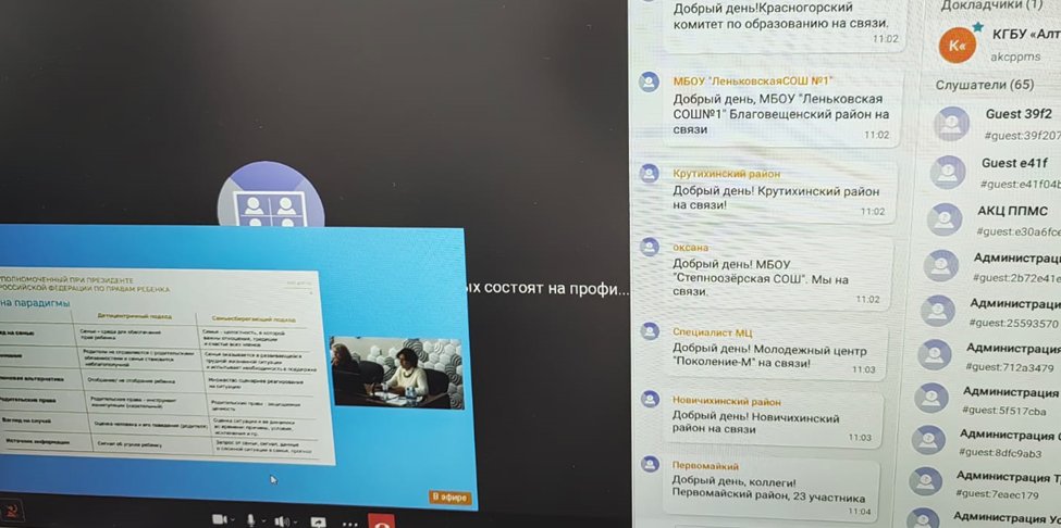 Задача онлайн-марафона — это не только возможность дать родителям максимум полезной информации о воспитании детей и разрешении сложных жизненных ситуациях, это совместная деятельность по внедрению в крае семьесберегающего подхода в деятельности органов и учреждений в интересах семей с детьми. В связи с этим Наталья Румянцева, заместитель директора Алтайского краевого центра ППМС-помощи дала старт встречи на совместную деятельность в данном направлении. Она рассказала о том, как в регионе реализуется социальный проект «Вызов» по профилактике социального сиротства, инициируемый Уполномоченным при Президенте РФ по правам ребенка. Результатами которого стали такие мероприятия, как: открытие служб «Дети в семье», перепрофилирование домов ребенка, изменение подхода в оказании наркологической помощи, поддержка родителей, имеющих намерения восстановиться в родительских правах, оказание помощи семье без разлучения с ребенком. Вторичное социальное сиротство — это проблема, с которой в рамках специального проекта «Вызов» также предстоит работать. «В любой проблеме возникающие в семье мы должны находить возможность решать эти проблемы с позиции помощи и поддержки. Мы не ищем причин забрать детей, мы ищем ресурсы для помощи родителям в реабилитации, в коррекции, в решении конфликтов» - подчеркнула Наталья Леонидовна.