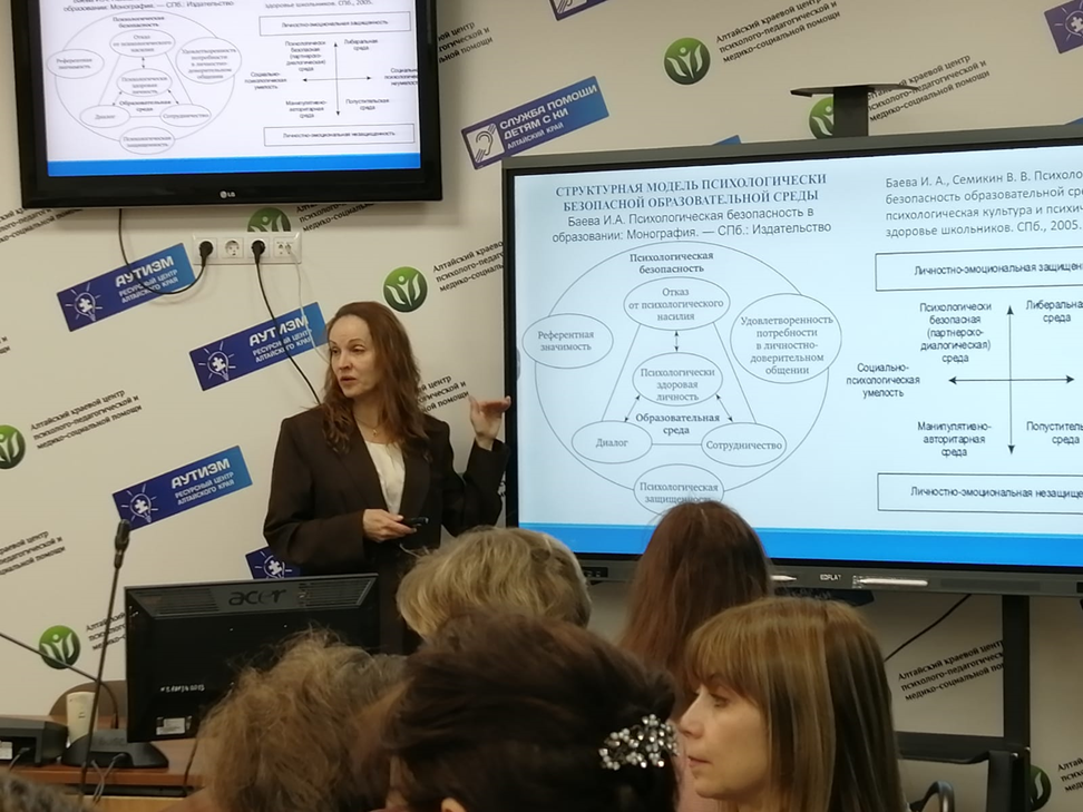 Введение в тему началось со знакомства основными документами, регламентирующими обеспечение безопасности в образовательной среде. Татьяна Волкова, заведующий кафедрой общей и прикладной психологии Алтайского государственного медицинского университета, кандидат психологических наук, доцент, также рассказала слушателям об угрозах, рисках, технологиях «психологической безопасности» и формировании у обучающихся ценностного отношения к здоровому образу жизни и человеку.