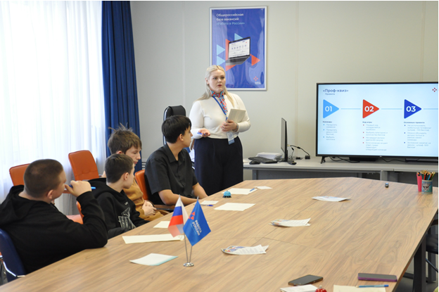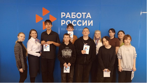 В конференц-зале ребятам показали презентацию о работе единой цифровой платформы «Работа в России», где в открытом доступе содержится информация обо всех работодателях страны. Подростки узнали о способах получения услуг, подачи заявлений и постановки на учет в качестве соискателей. Им объяснили, что можно найти подходящий вариант и принять участие в собеседовании, даже не становясь на учет, а затем пройти обучение в рамках нацпроекта «Демография».
