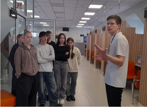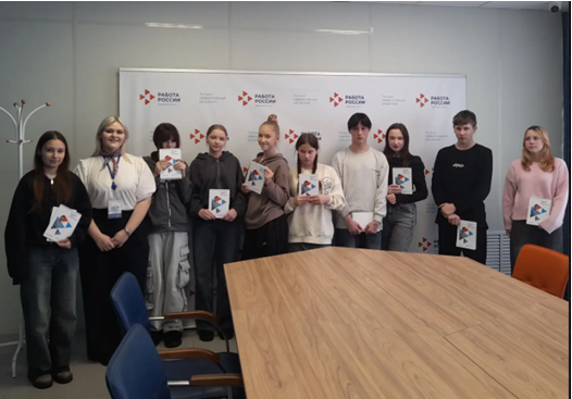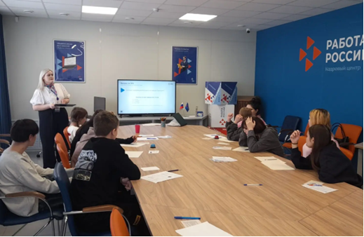 С первых минут визита привычный образ «биржи труда» начал разрушаться. Директор центра Елена Сергеевна Трубицына вместе с коллегами провела группу по отделам, показав, что современная служба занятости — это не очереди и бумажные справки, а цифровые технологии и индивидуальный подход. Специалисты центра рассказали о работе единой цифровой платформы «Работа в России». Подростки узнали, что можно дистанционно подать заявление, пройти собеседование и воспользоваться бесплатным обучением в рамках нацпроекта «Демография».