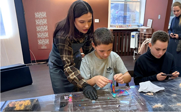 Руководитель мастерской Александра Ринатовна Купина встретила группу и показала студию. Она рассказала подросткам, чем здесь можно заниматься: живописью, графикой, скульптурой, основами дизайна и декоративно-прикладного искусства. Александра подчеркнула, что творческое мышление сегодня — это профессиональный инструмент, а не просто увлечение.