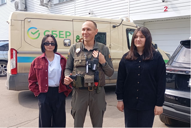 Мероприятие началось с приветствия инкассаторской машины, возвращающейся с задания. Участники ознакомились с оснащением специализированного автотранспорта, средствами защиты сотрудников и техническими особенностями инкассаторских машин, включая усиленную броню, систему видеонаблюдения с камерами кругового обзора и защитными зеркалами. Ребята обсудили профессию инкассатора с экипажем. Специалисты продемонстрировали защищённые контейнеры, оснащённые системами против взлома и уничтожения содержимого при несанкционированном доступе, что наглядно показало сложность данной профессии.
