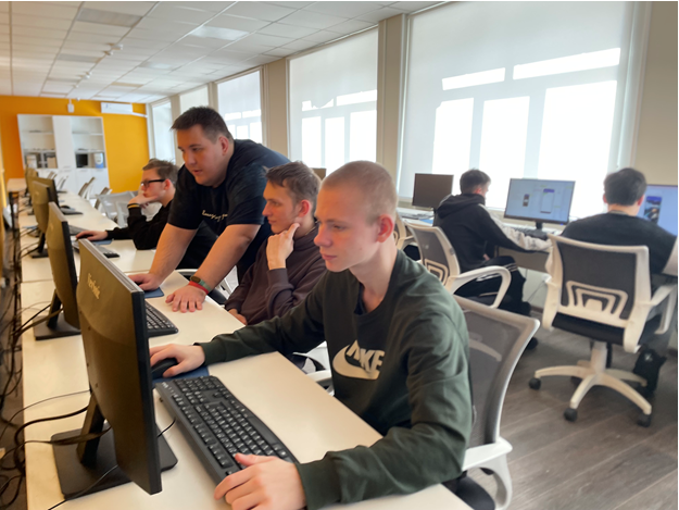 Ребят встретил педагог центра Антон Юрьевич Чуйков. Центр «IT-Куб» открыт в рамках федерального проекта «Цифровая образовательная среда» национального проекта «Образование». Здесь школьники и студенты могут освоить востребованные языки программирования, научиться писать приложения для мобильных устройств, работать с большими данными, создавать виртуальную реальность и заниматься робототехникой. В распоряжении центра — 3D-принтеры, очки дополненной и шлемы виртуальной реальности, учебные роботы.